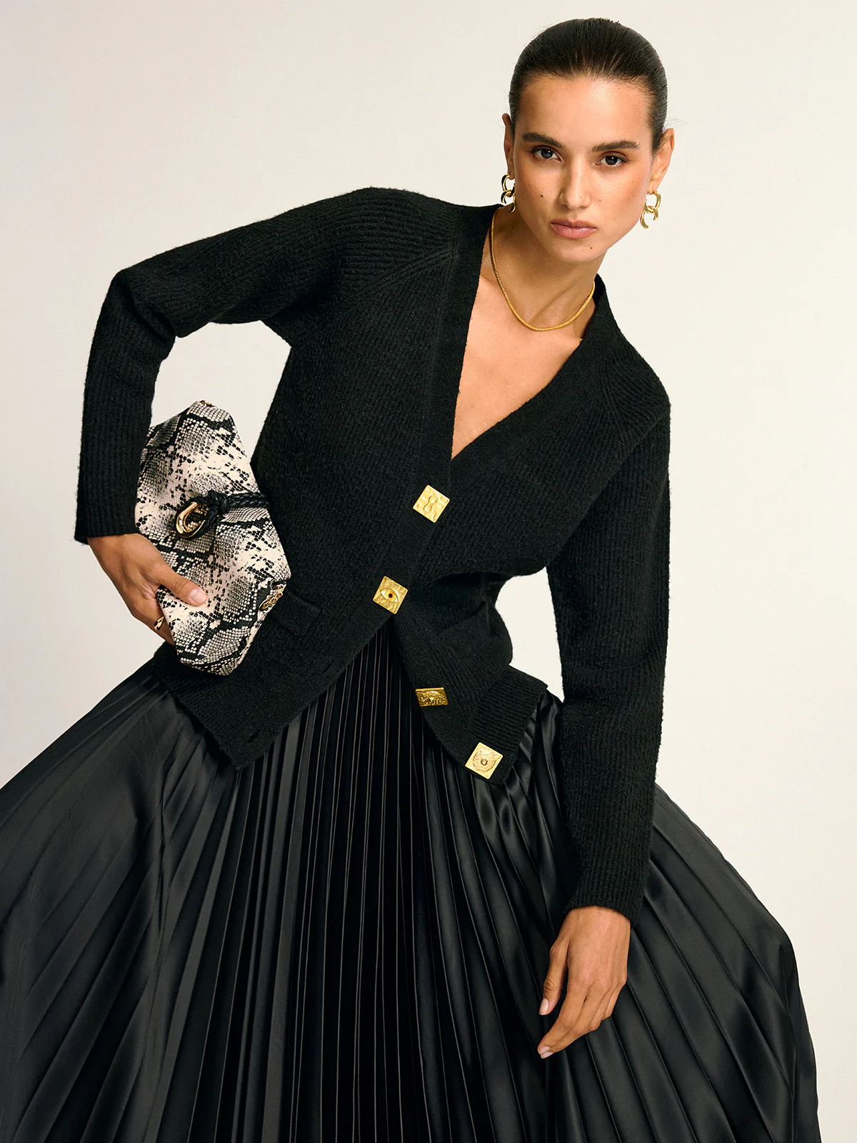 Metal Button V-Neck Knit Cardigan