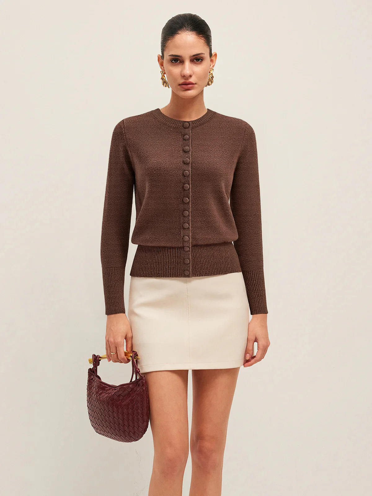 Crew Neck Button-Front Knit Cardigan