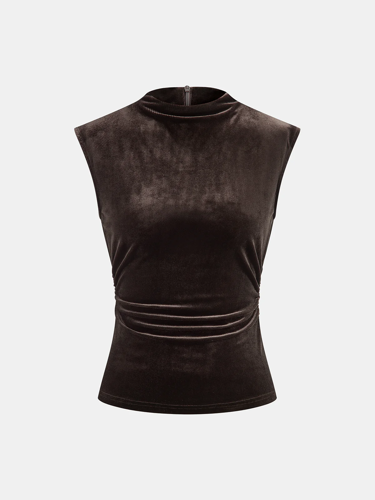 Mock Neck Ruched Velvet Sleeveless Top