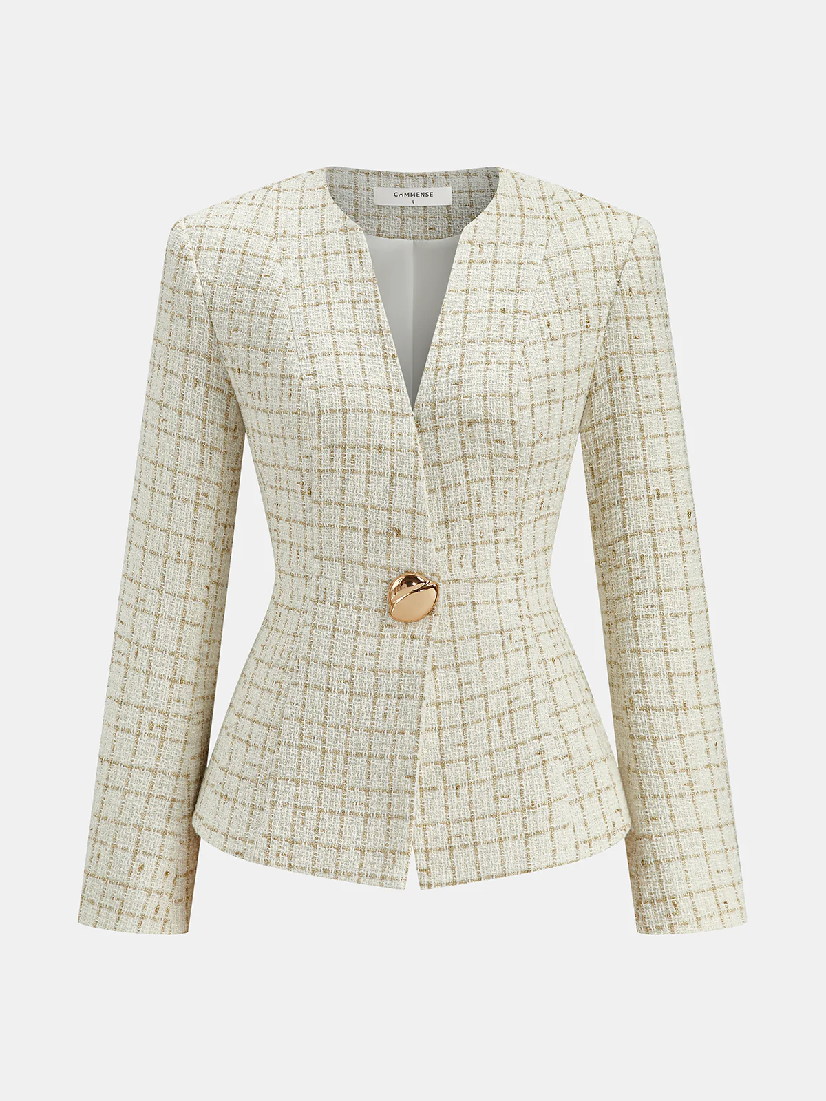 Metal Button Plaid Tweed Blazer