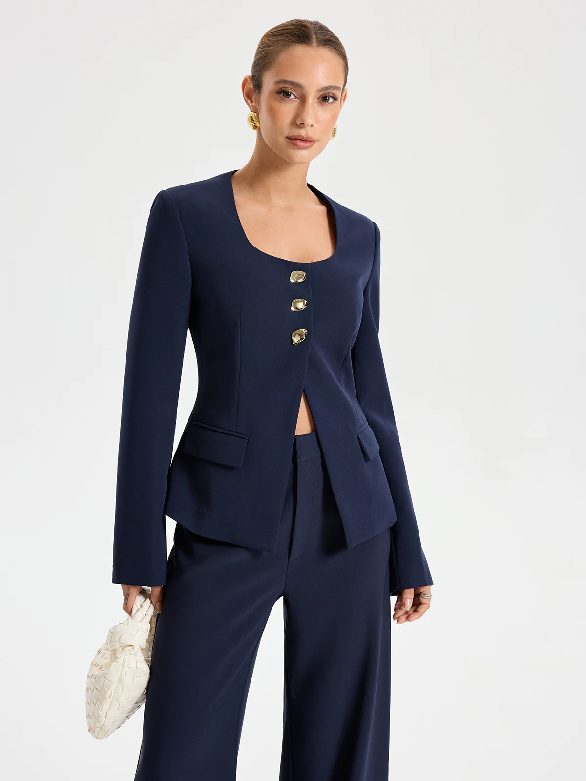 Metal Button Square Neck Blazer