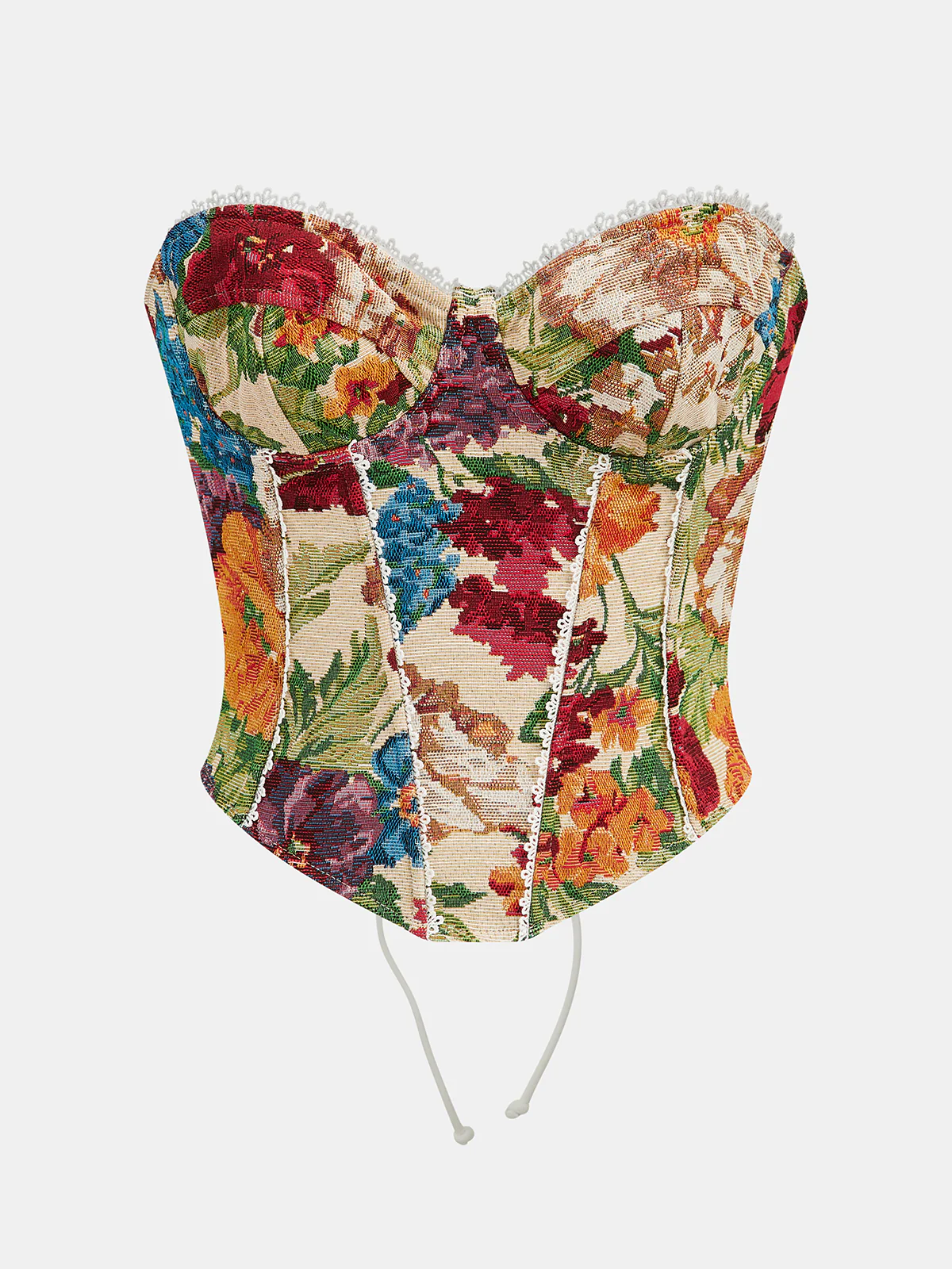 Lace Trim Lace-Up Back Corset Top