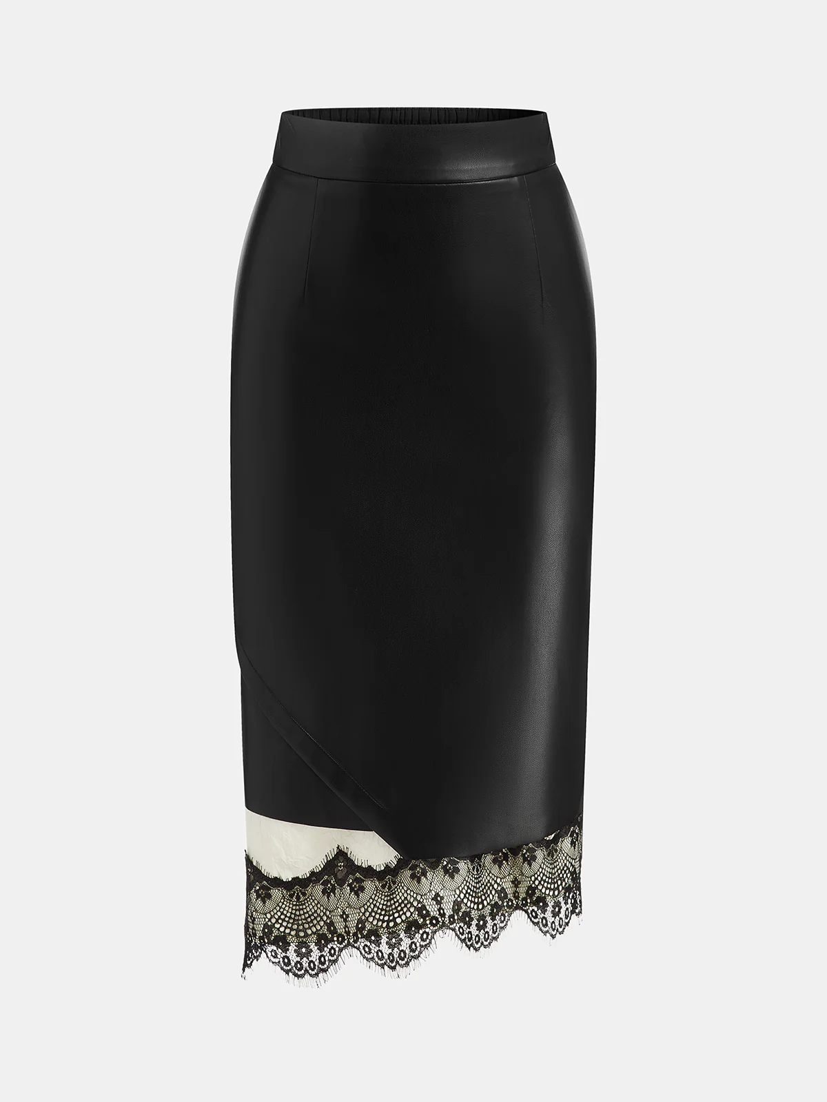 Lace Hem Faux Leather Midi Skirt