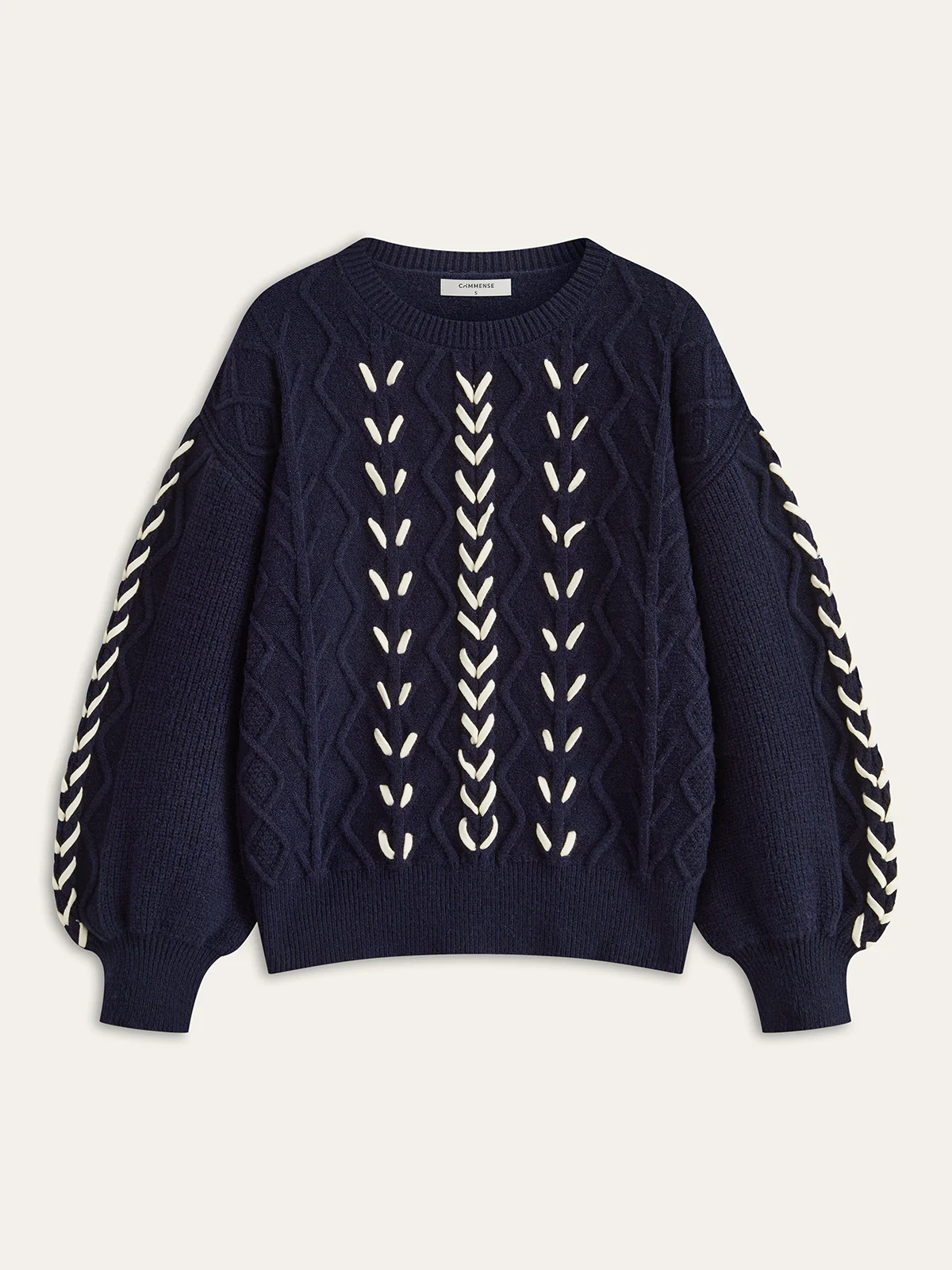 Contrast Stitch Wool-Blend Turtleneck Sweater