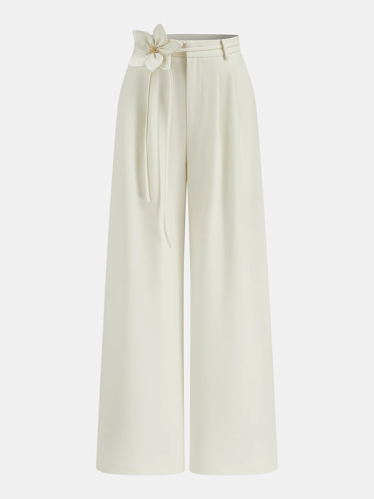 3D Floral Tie Wide-Leg Pants