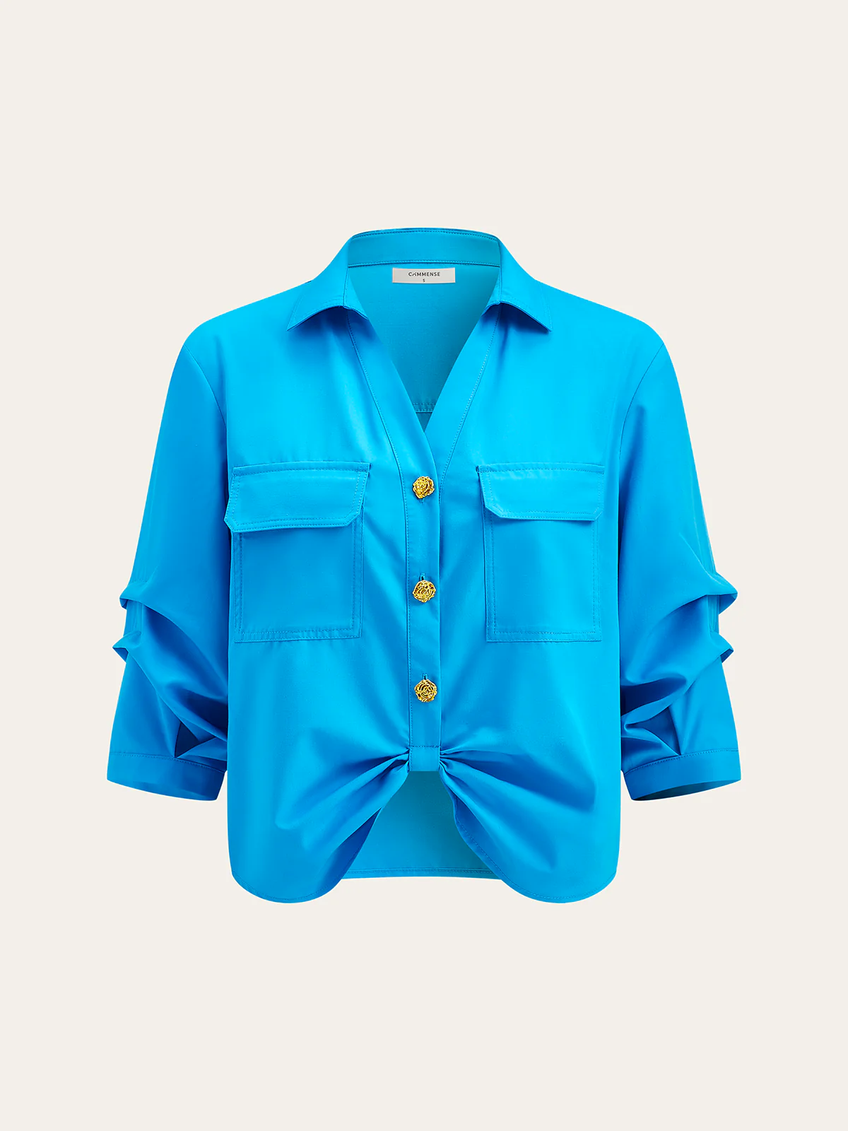 Pocketed Button-Up Blouse with Front Knot
