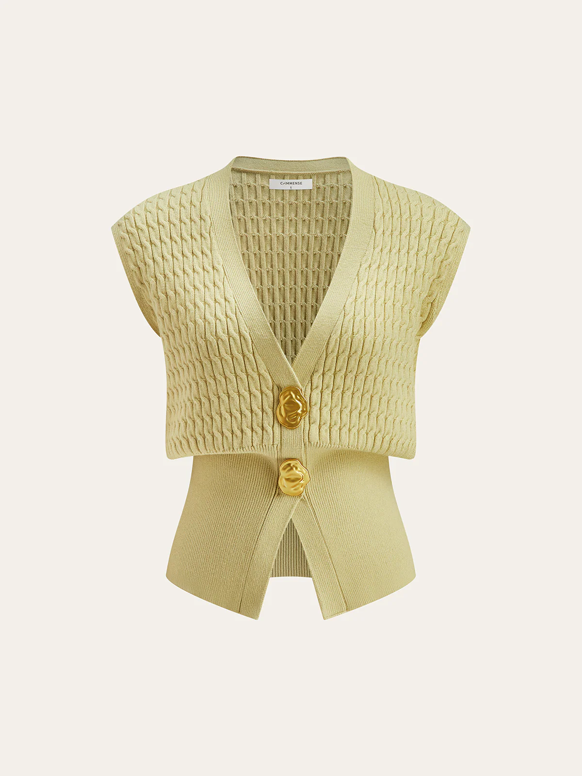 Metal Button Cable Knit Waist-Cinching Vest