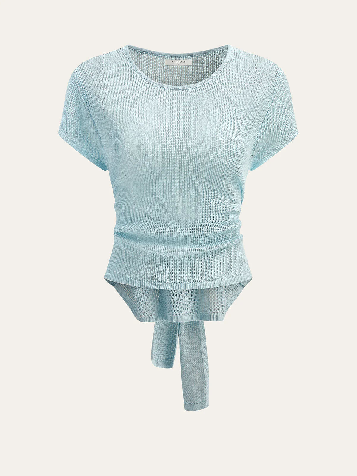Semi-Sheer Cross-Halter Neck Wrap Top