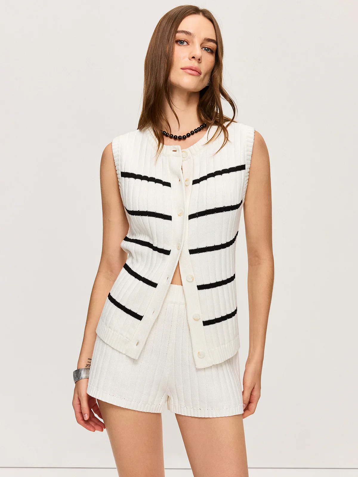 Striped Knit Vest and Shorts Co-ord Set