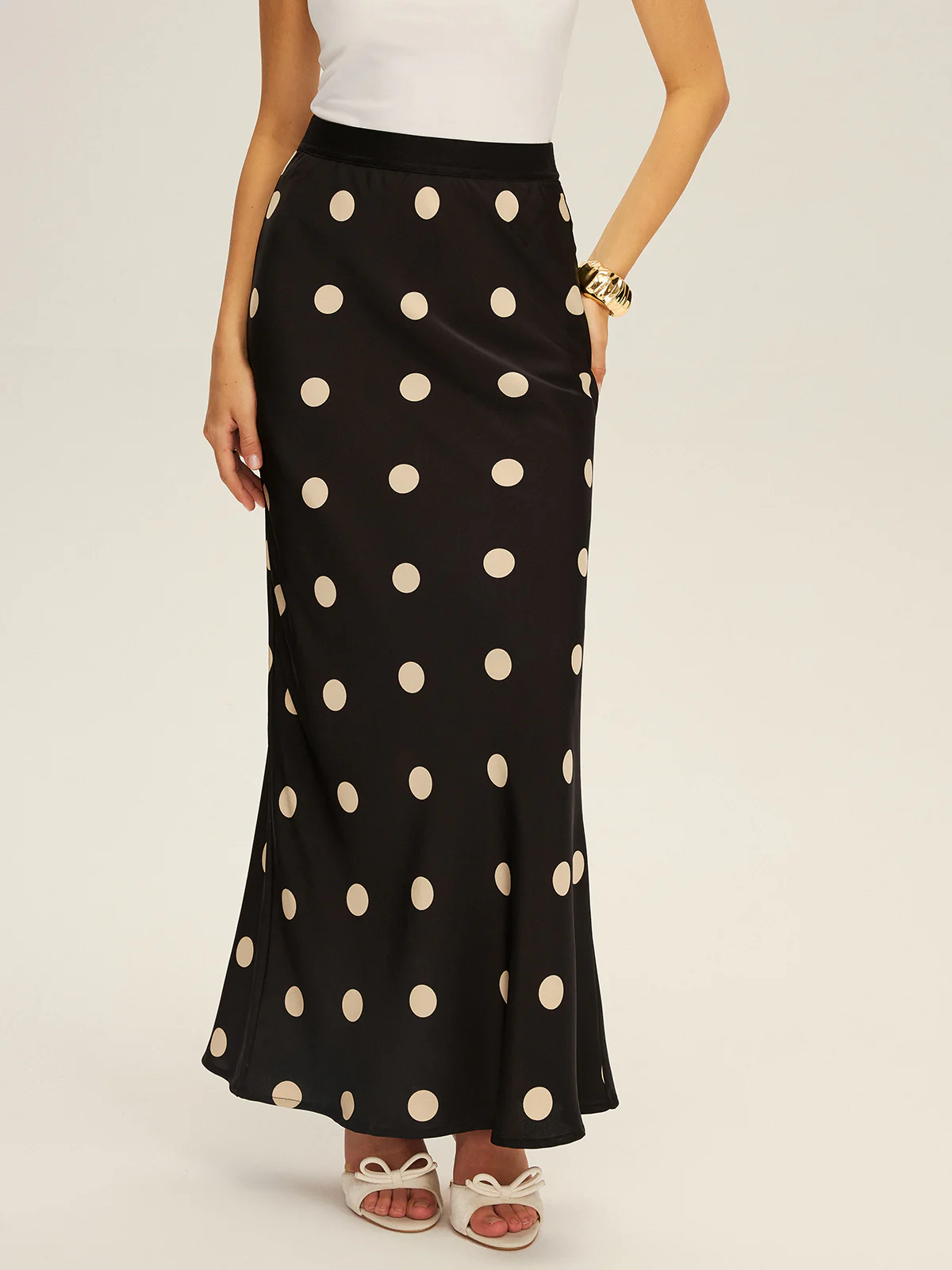 Satin Polka Dot Maxi Skirt