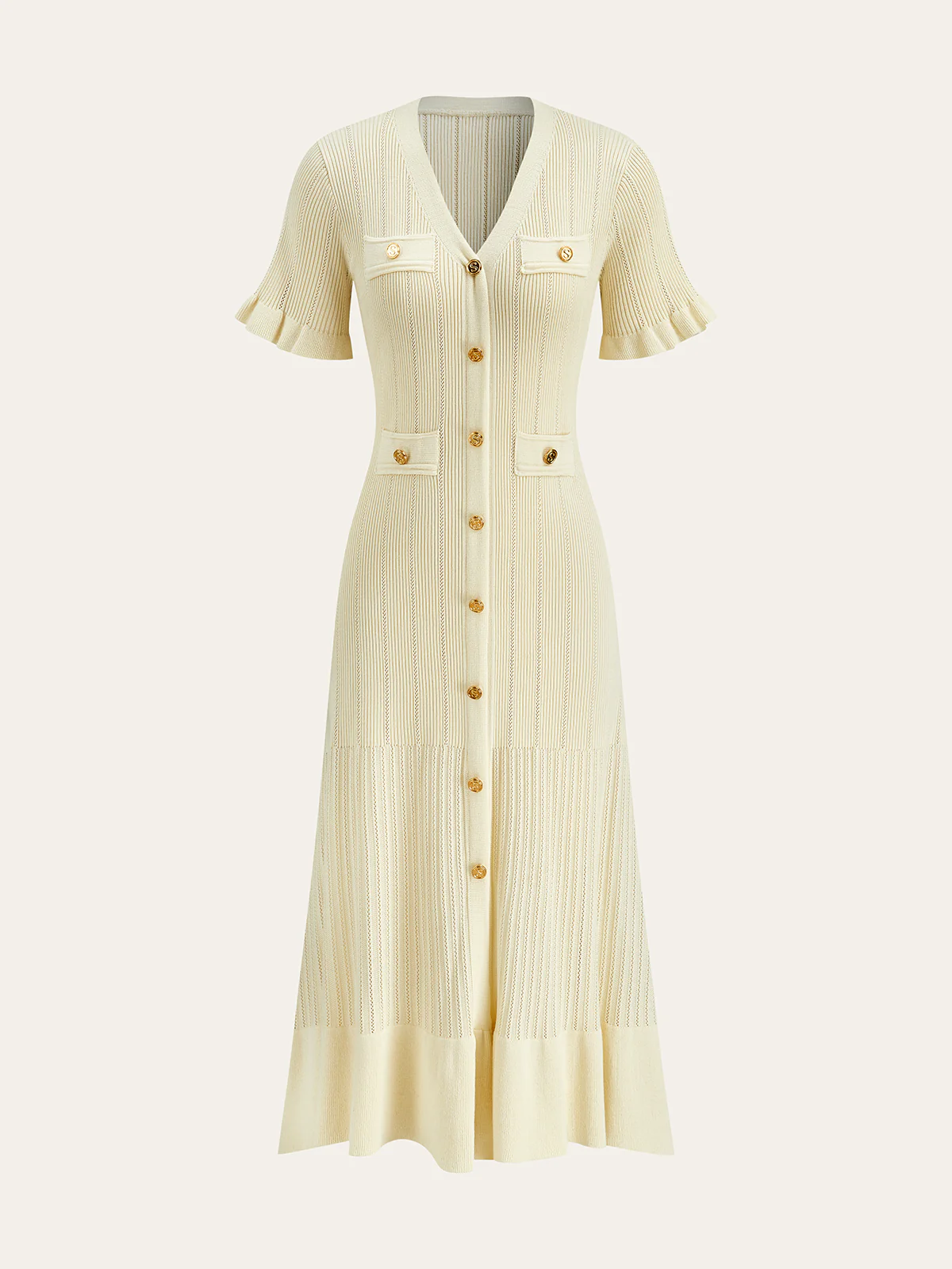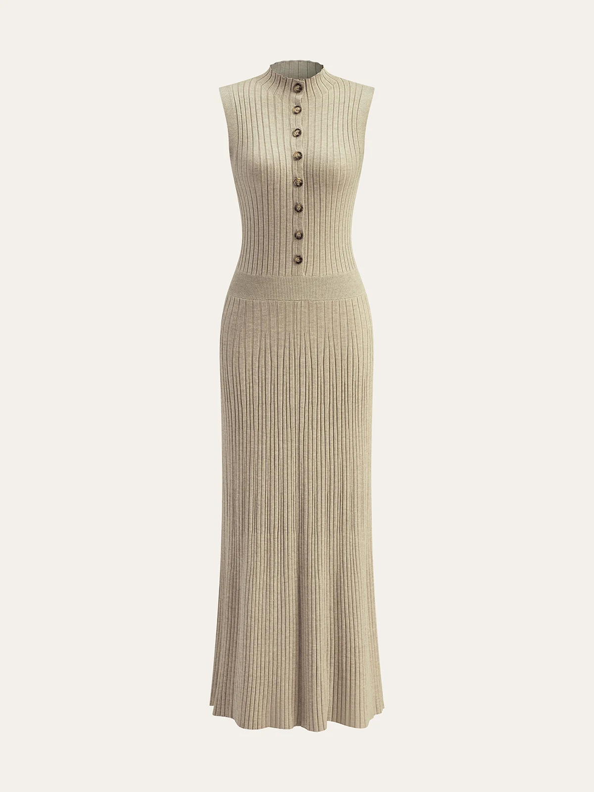 Wool Blend Ribbed Button Maxi Dress