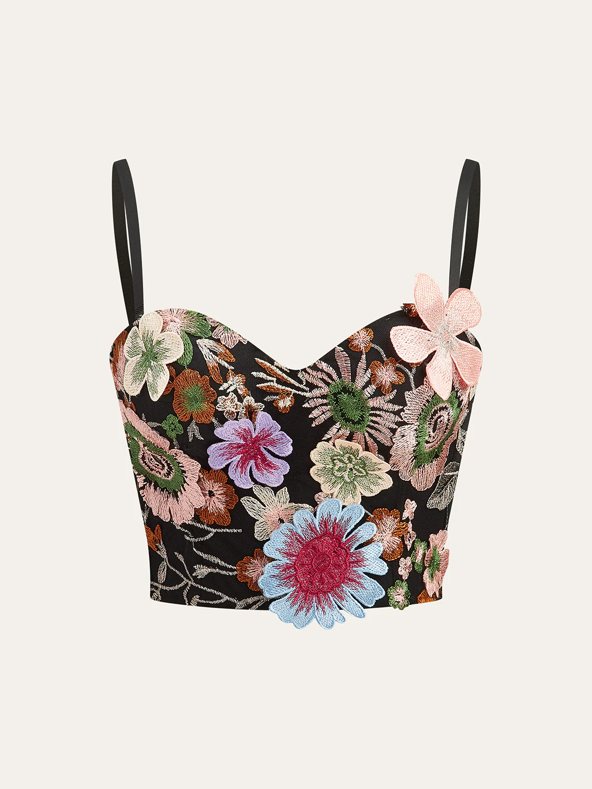 Semi-Sheer 3D Flower Embroidered Corset Top