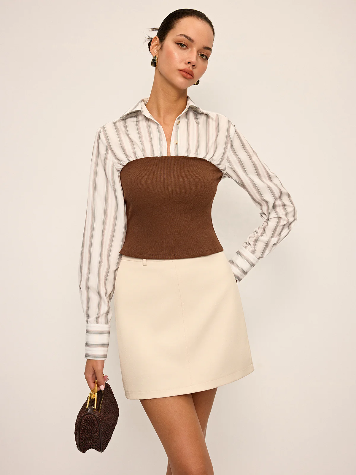 2 in 1 Ribbed Knit and Striped Contrast Shirt