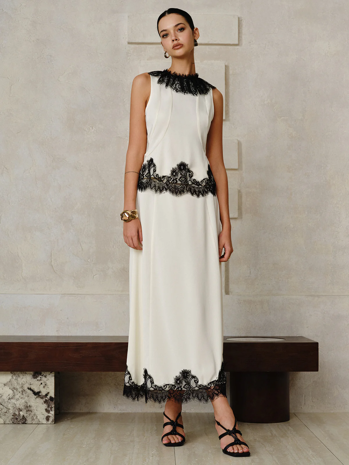 Semi-Sheer Lace Panel Maxi Dress without Belt