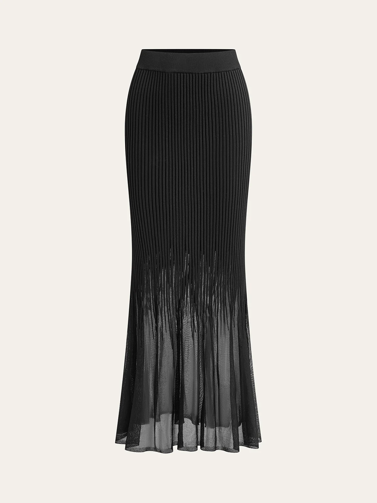 Mesh Hem Ribbed Knit Mermaid Skirt
