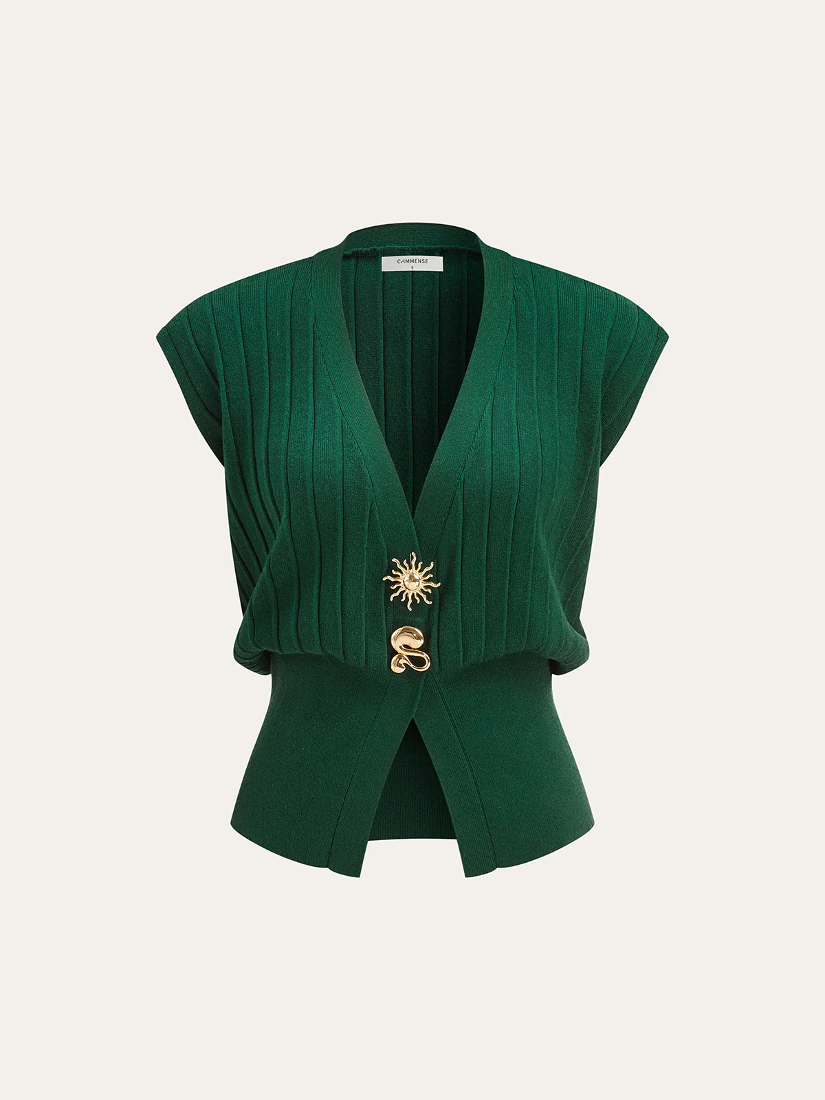 Metal Detail Cap Sleeve Ribbed Knit Vest