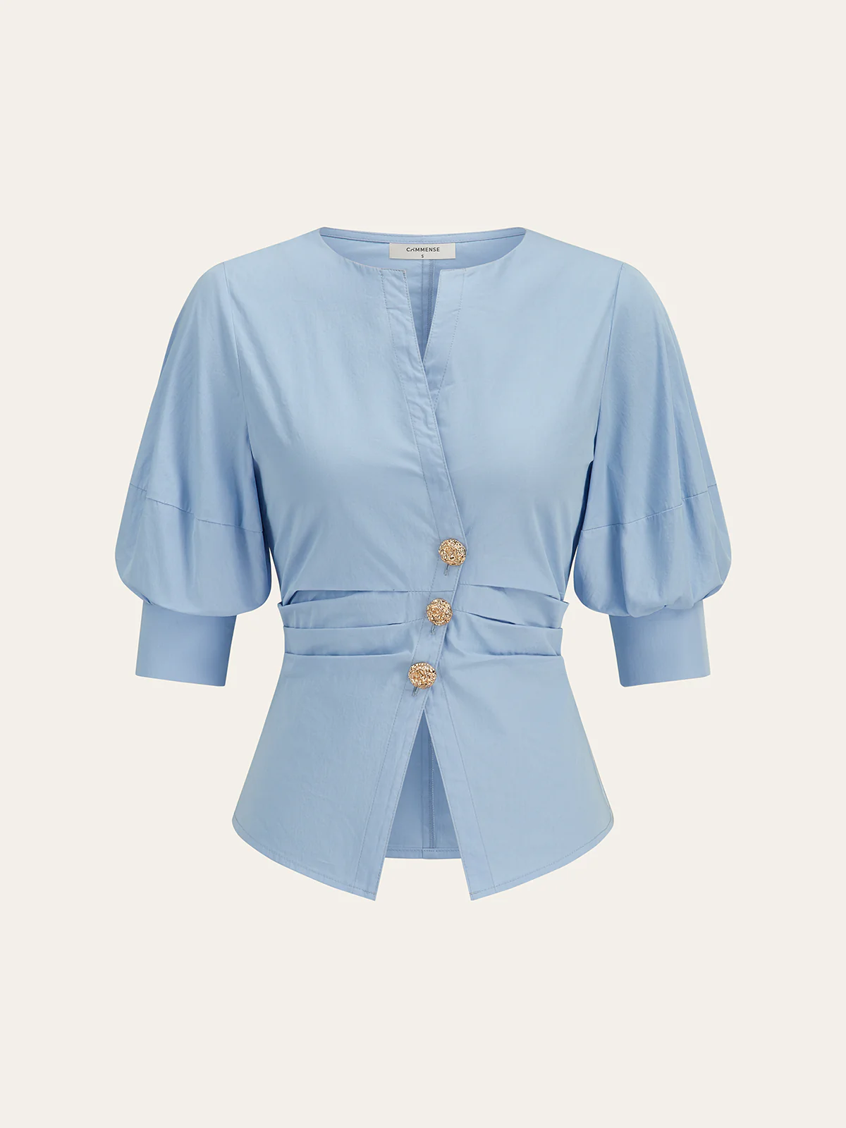 Asymmetric Metal Button Puff-Sleeve Shirt
