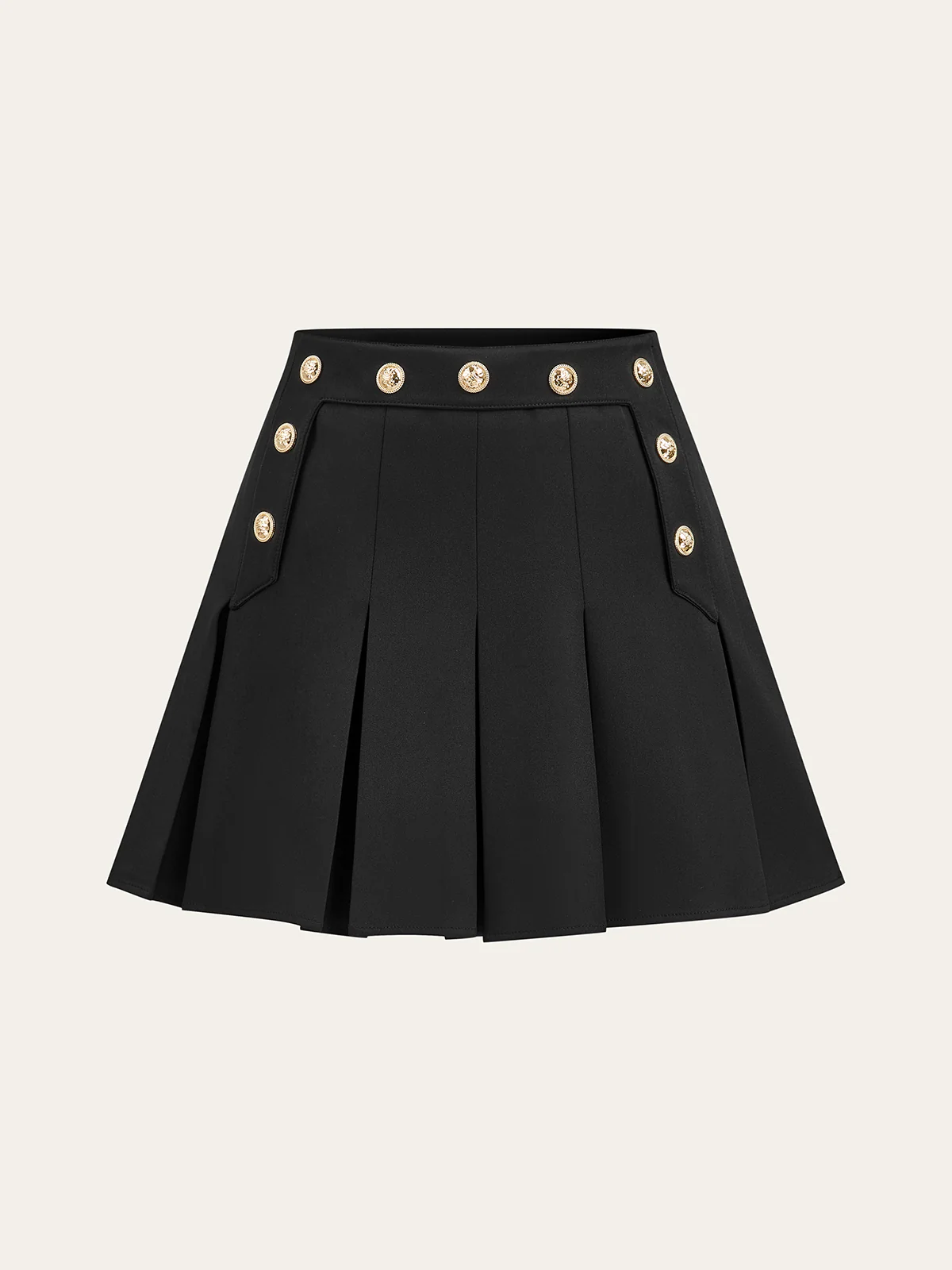 Pleated Mini Skirt with Decor Button