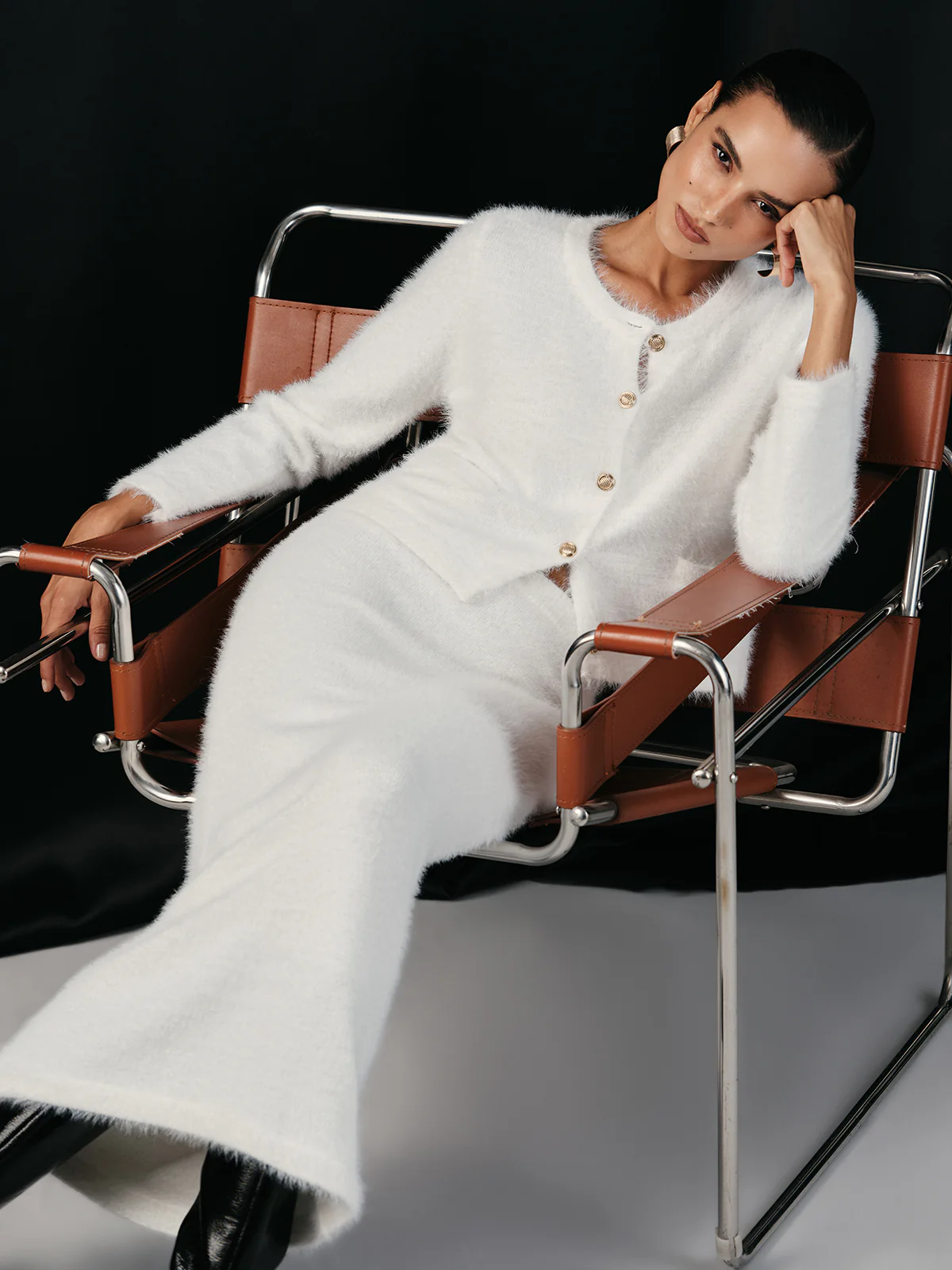 Textured Pearl Wool Blend Fitted Sweater Dress