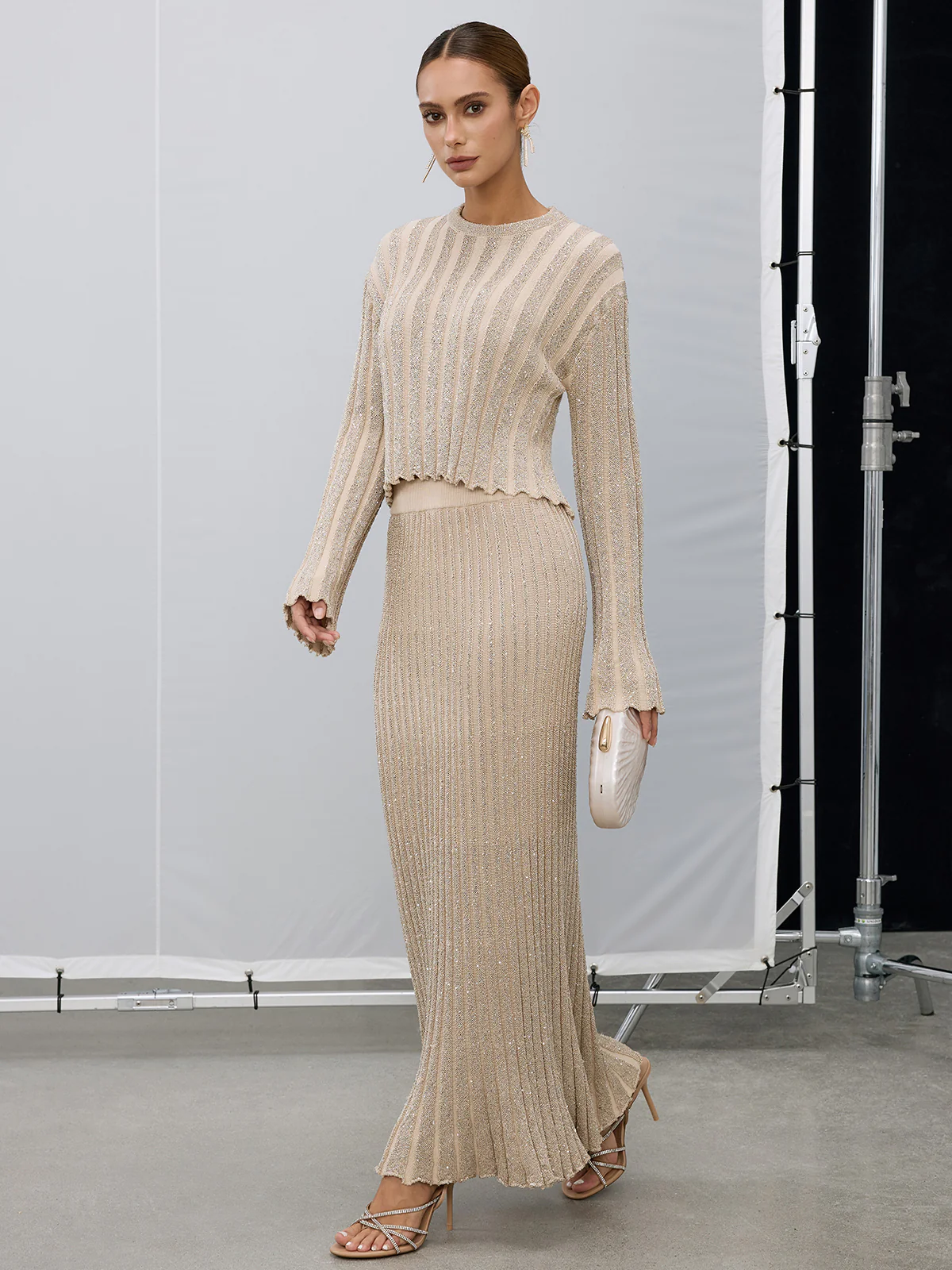 Oversized Turtleneck Knit Top and Maxi Skirt Set