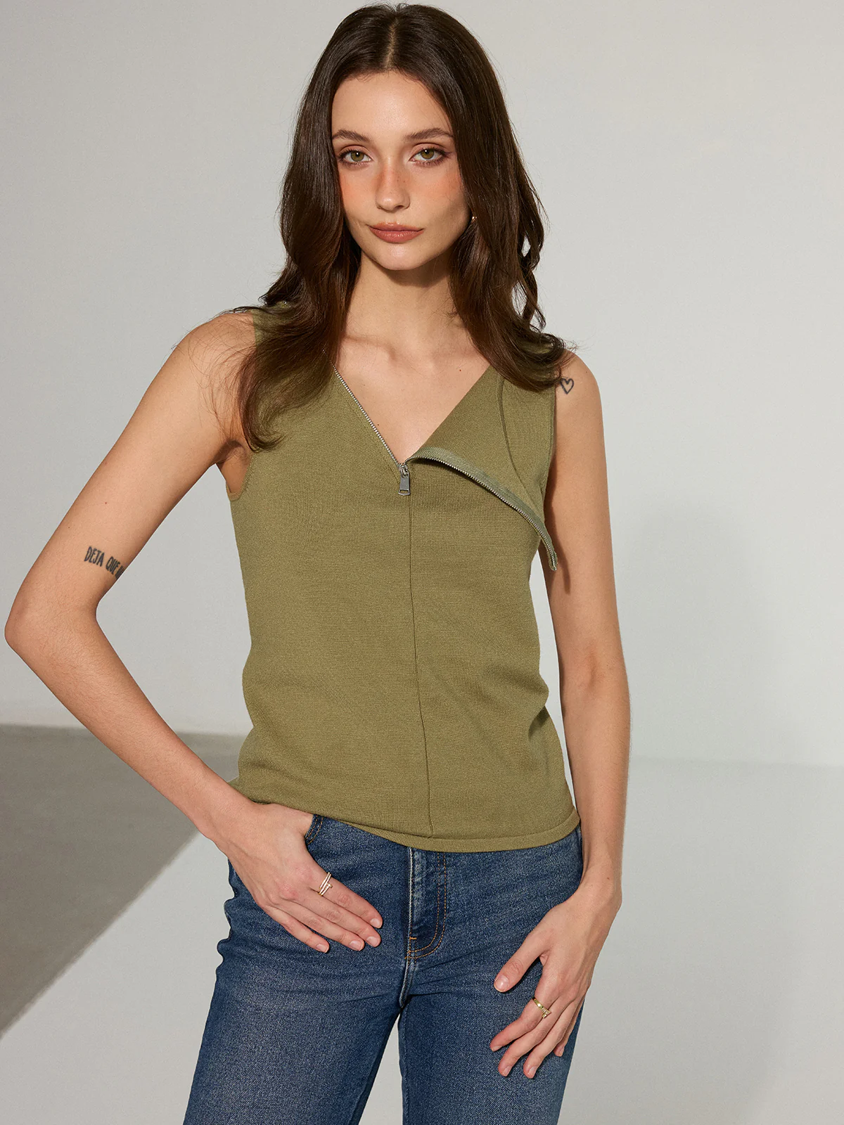 Asymmetric Zipper Sleeveless Top