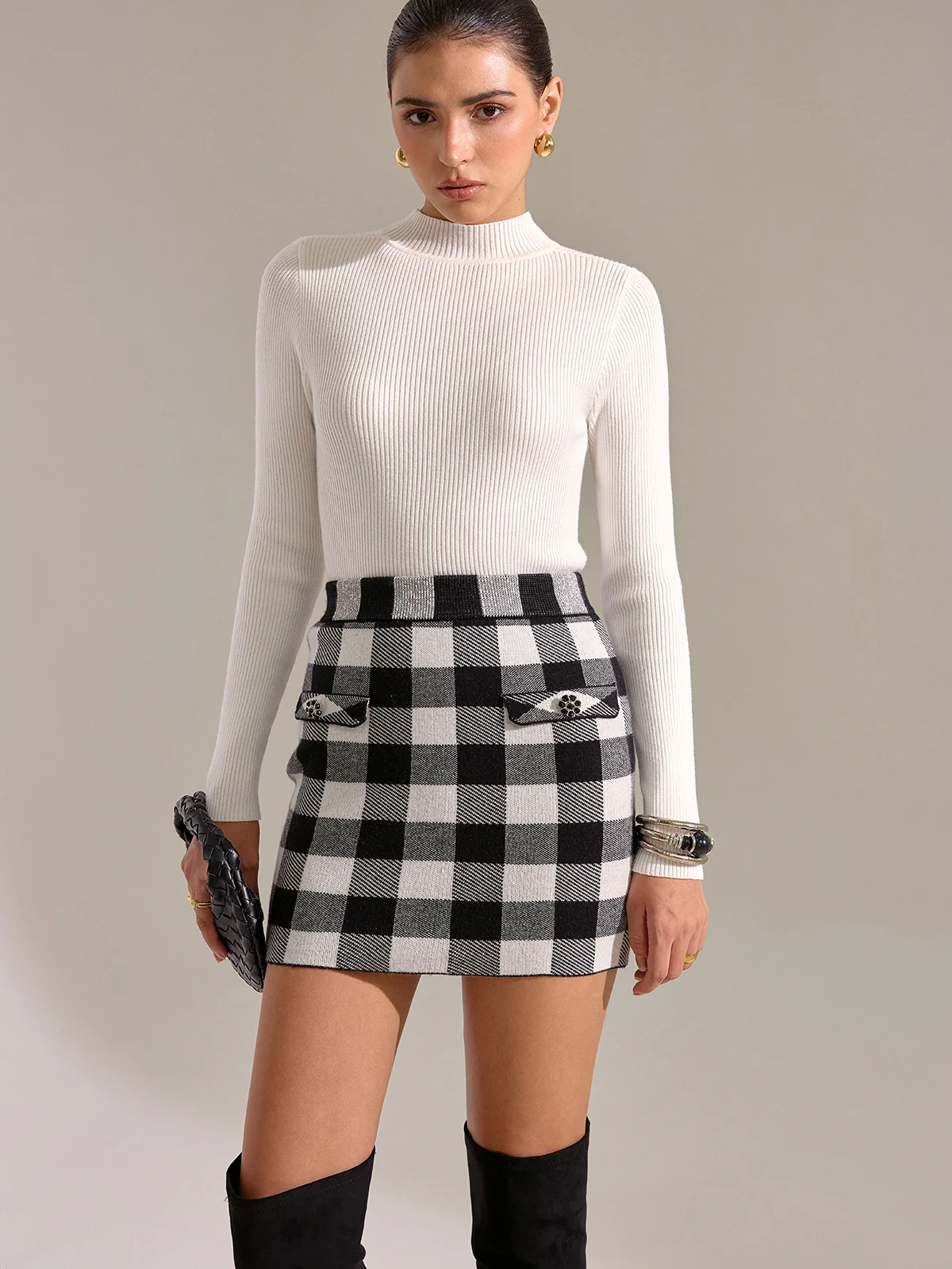 Checkered Wool Blend Mini Skirt