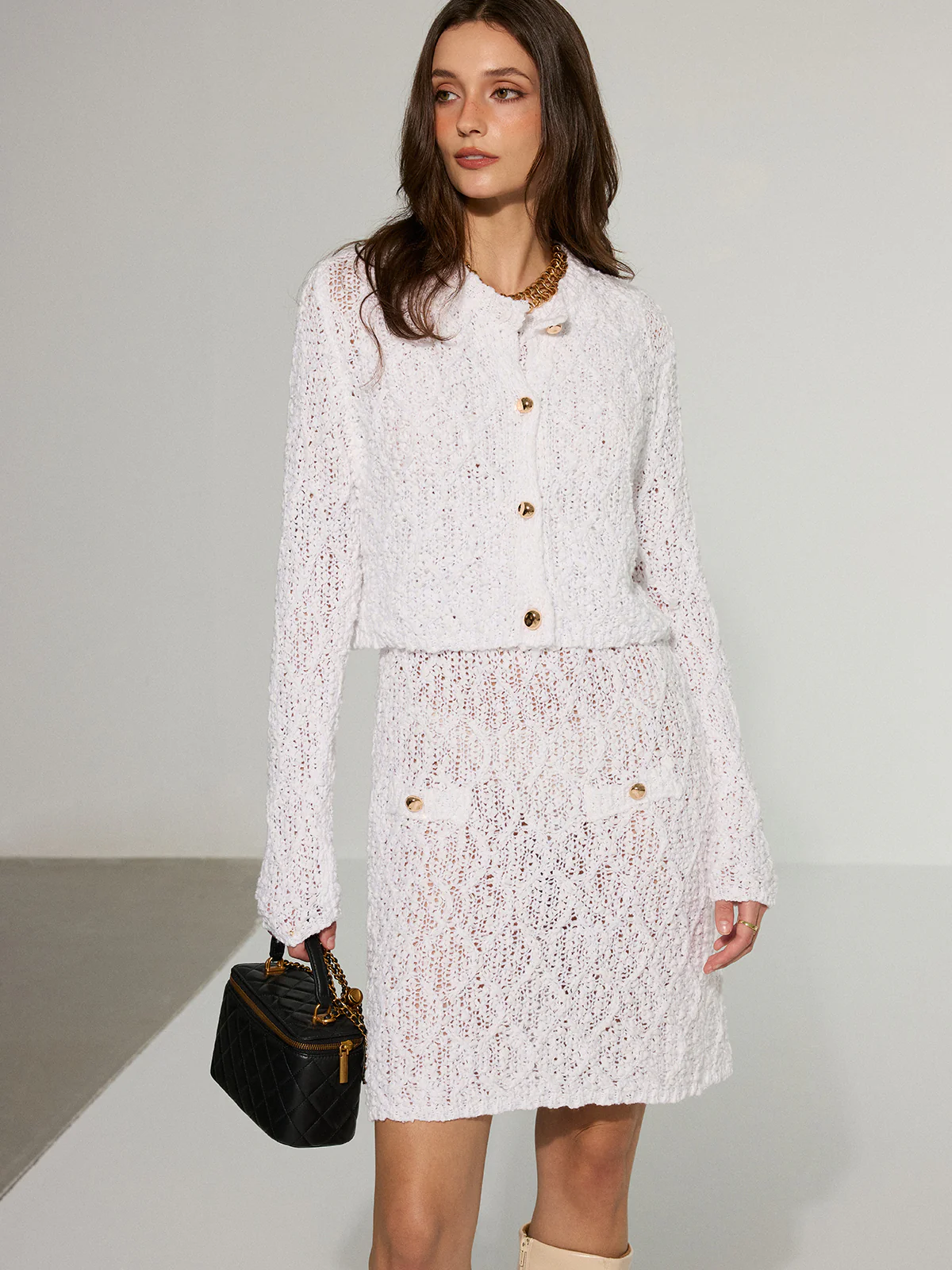 Textured Knit Cardigan and Dress Two-Piece Set