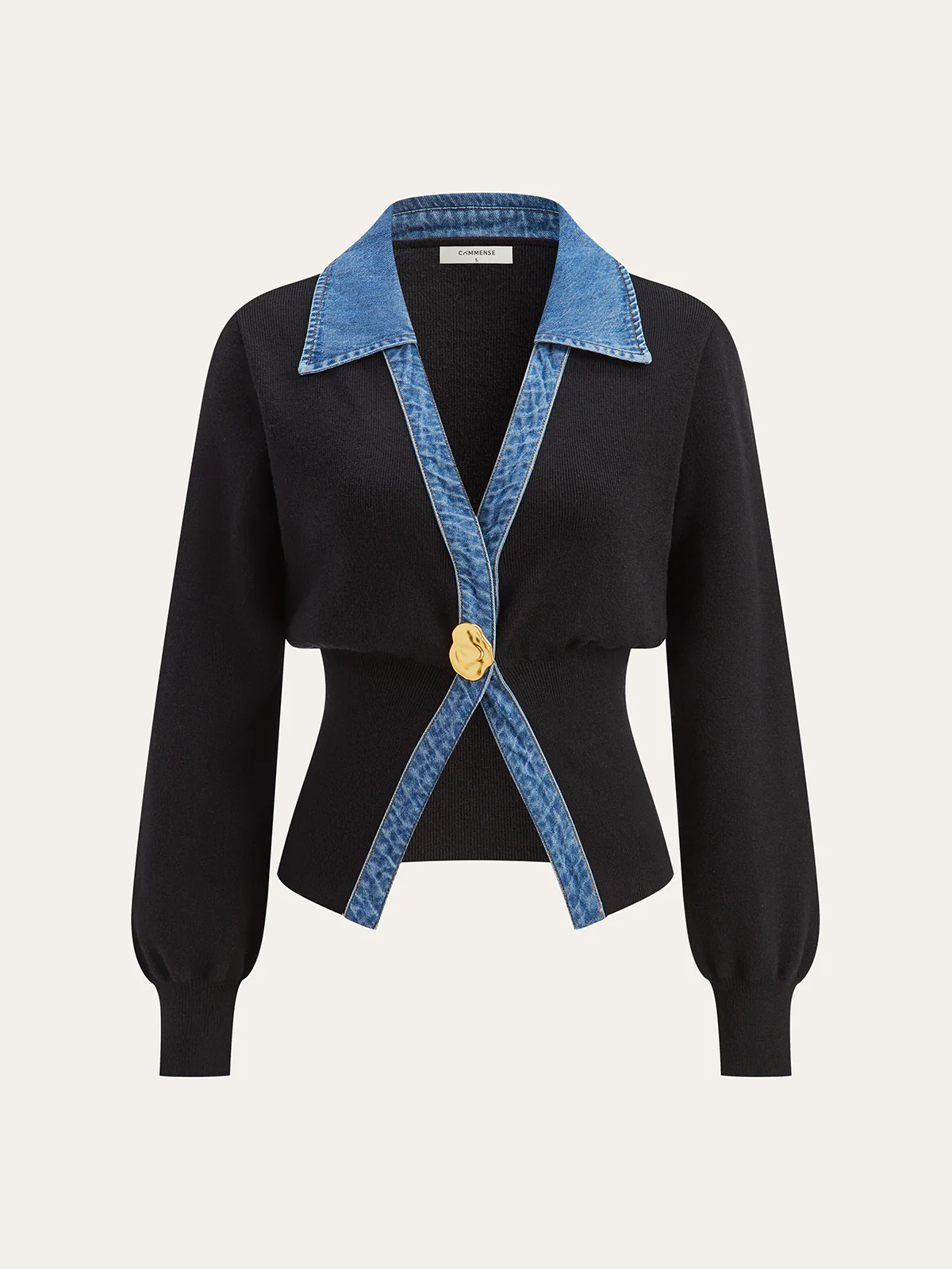 Denim Trim Metal Button Cardigan