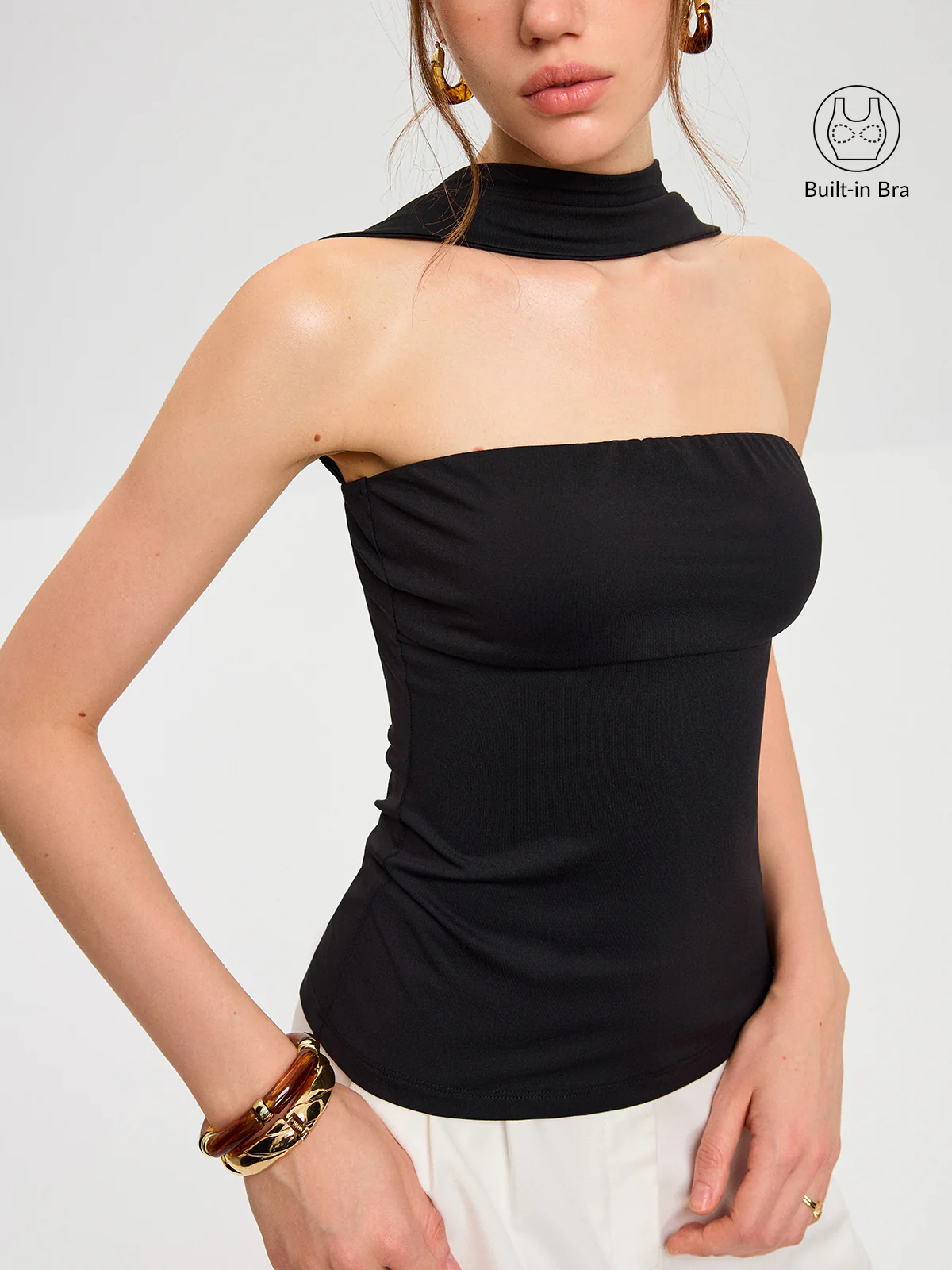 Color-Block Asymmetric Hem Ribbed Knit Top