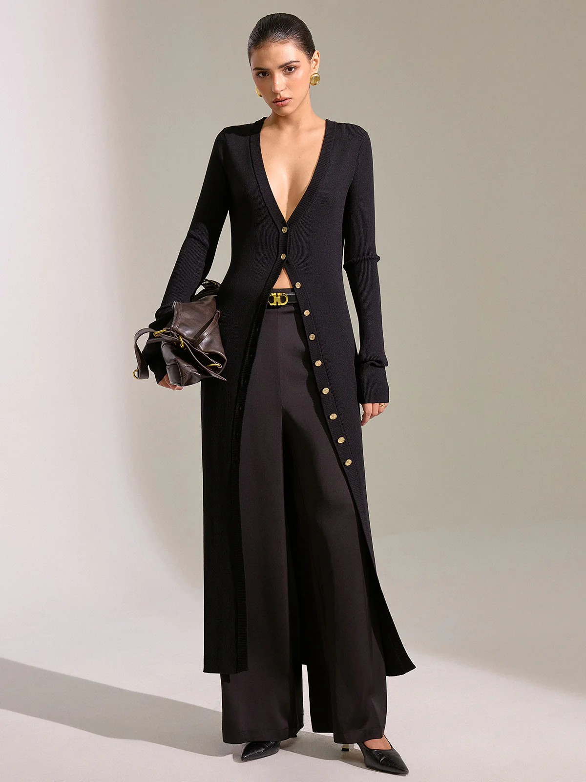 Metal Button Longline Knit Cardigan Dress