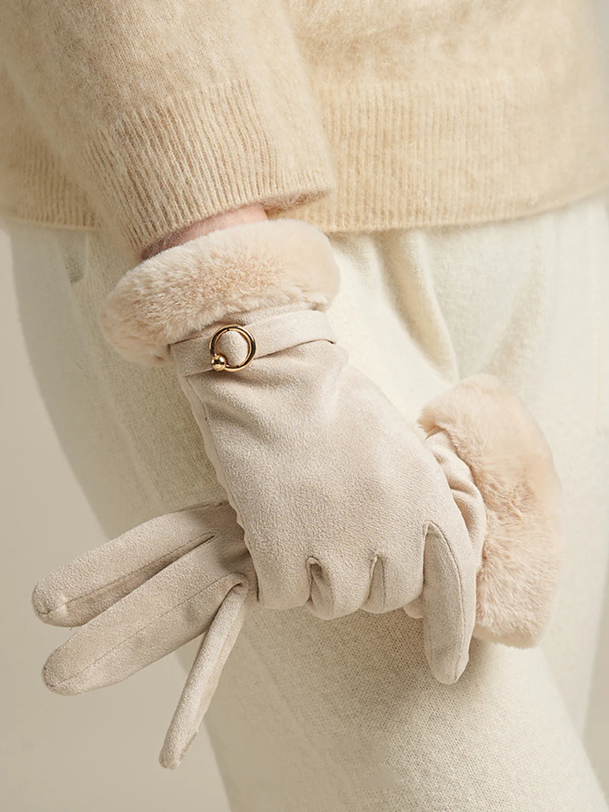 Suede Effect Faux Fur Cuff Gloves