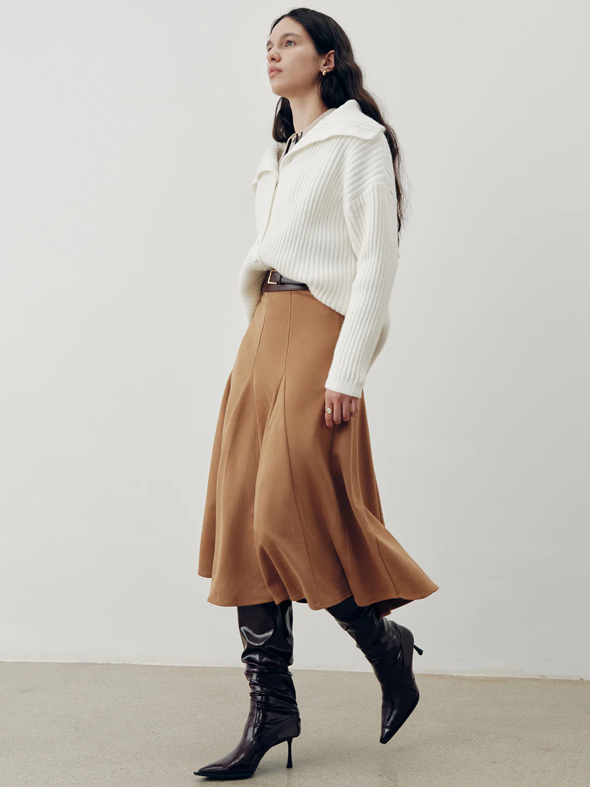 Suede Effect A-Line Maxi Skirt