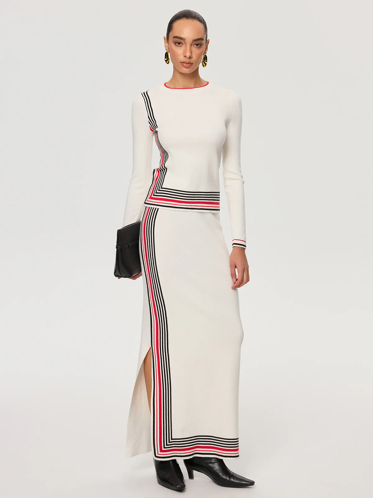 Striped Wool-Blend Slit Maxi Skirt