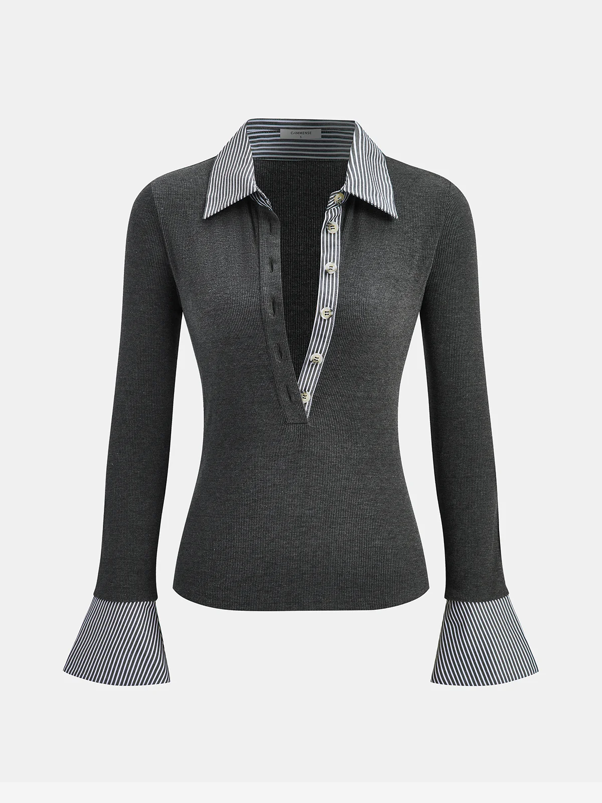 Striped Shirt Panel Knit Top