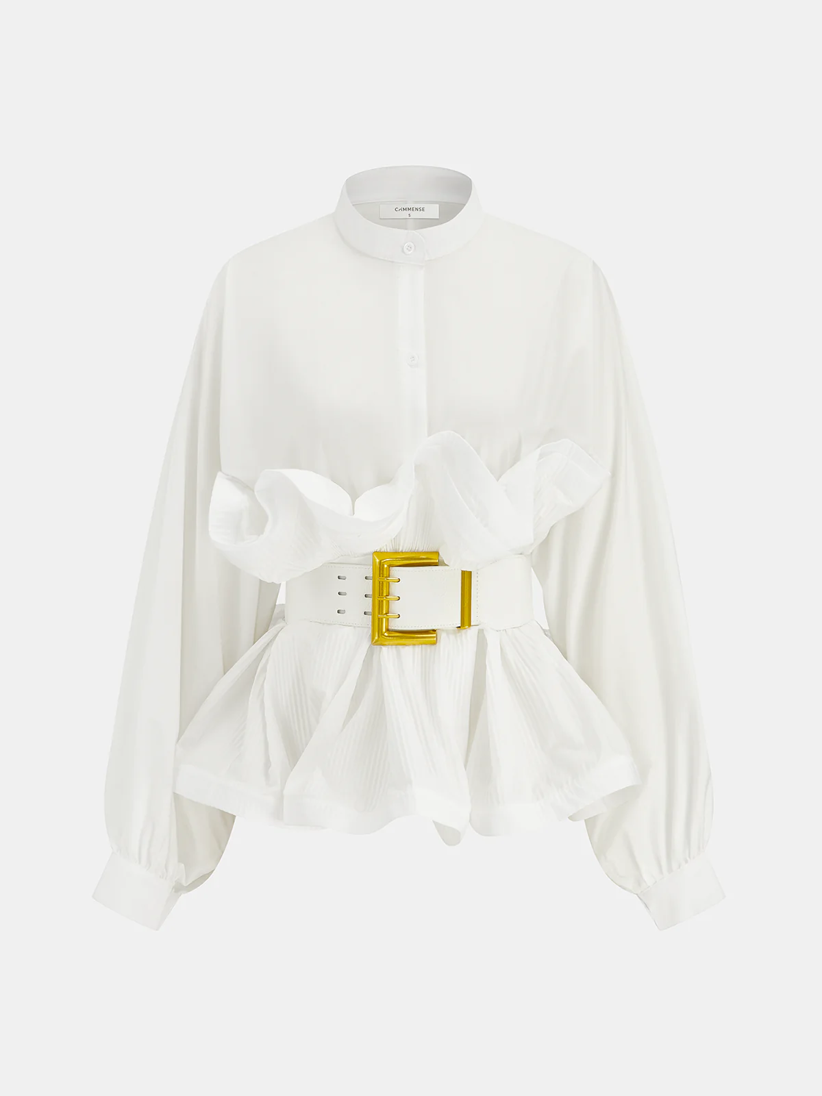 Stand Collar Belted Ruffled Shirt