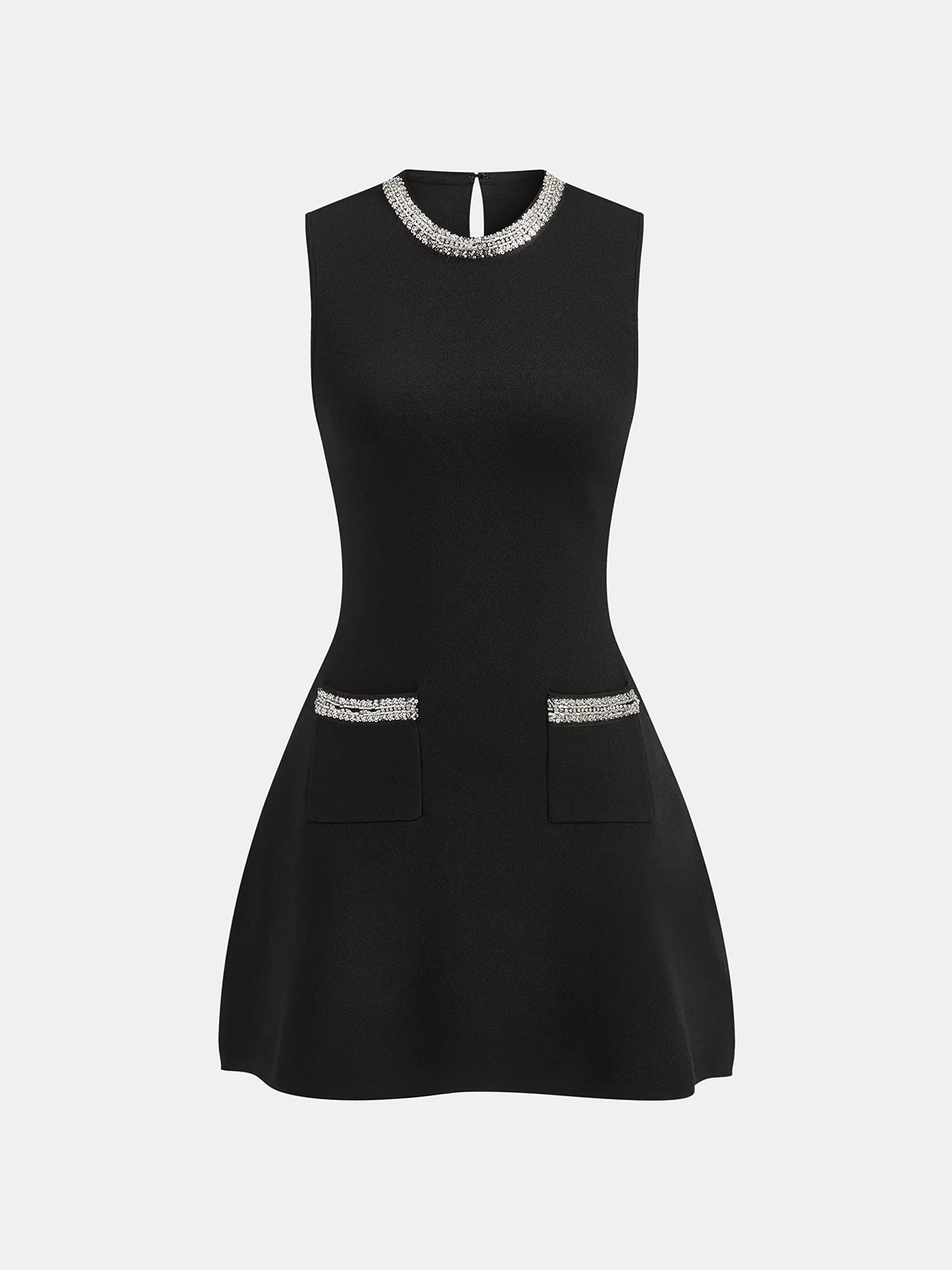 Sleeveless Flared Dress with Sequin Embellishments