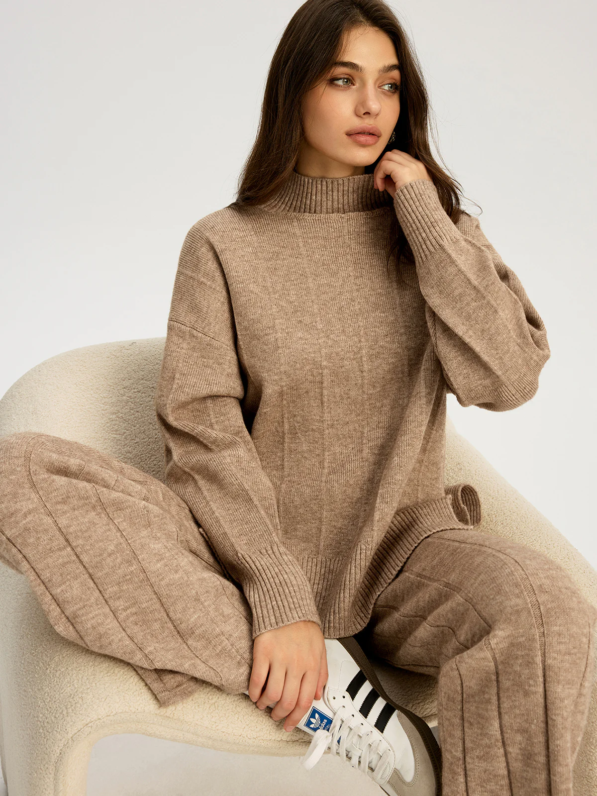 Soft Wide Rib Exposed Seam Jumper And Wide Leg Co-ord