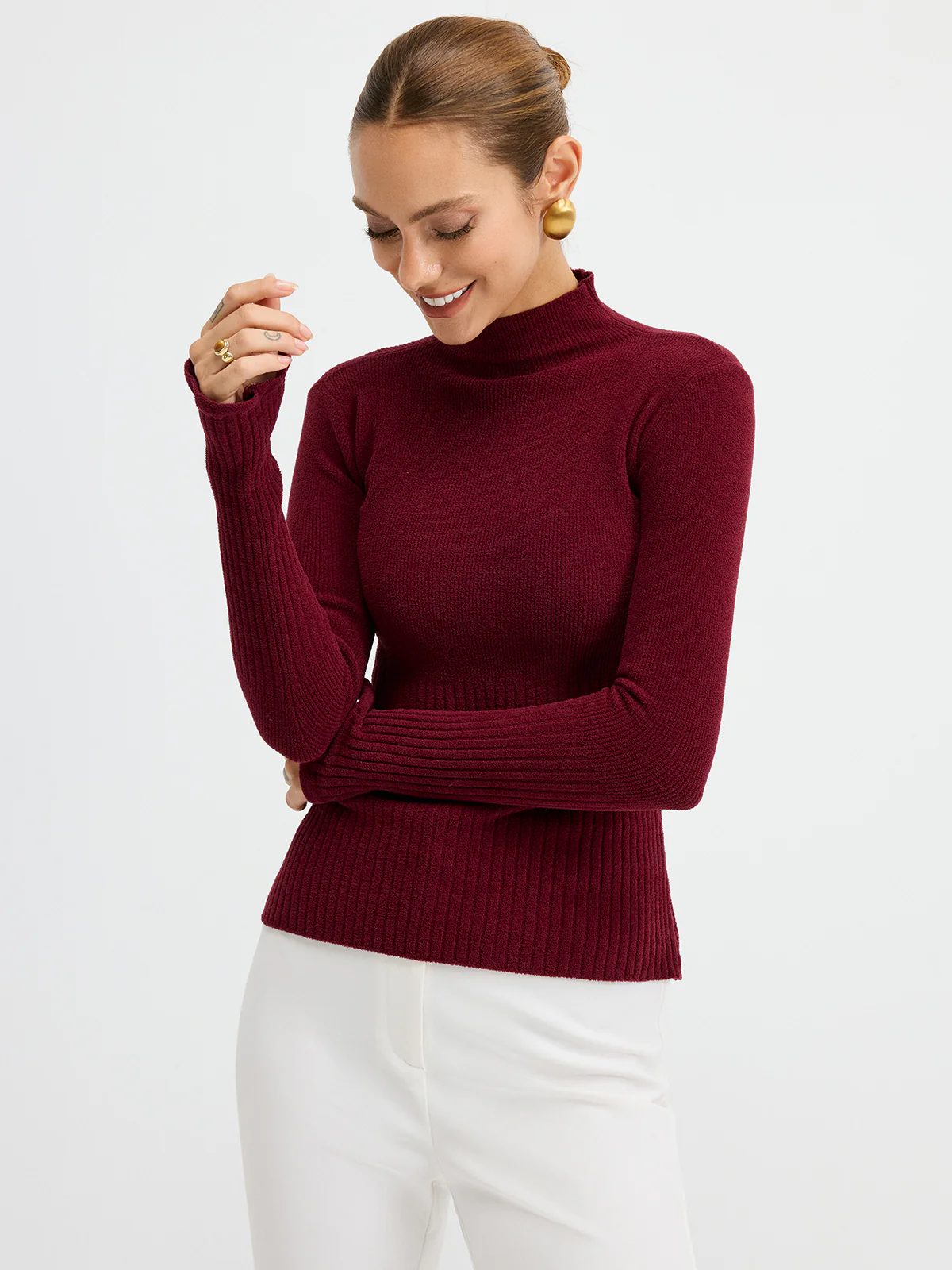 Slim Fit Mock Neck Ribbed Knit Top
