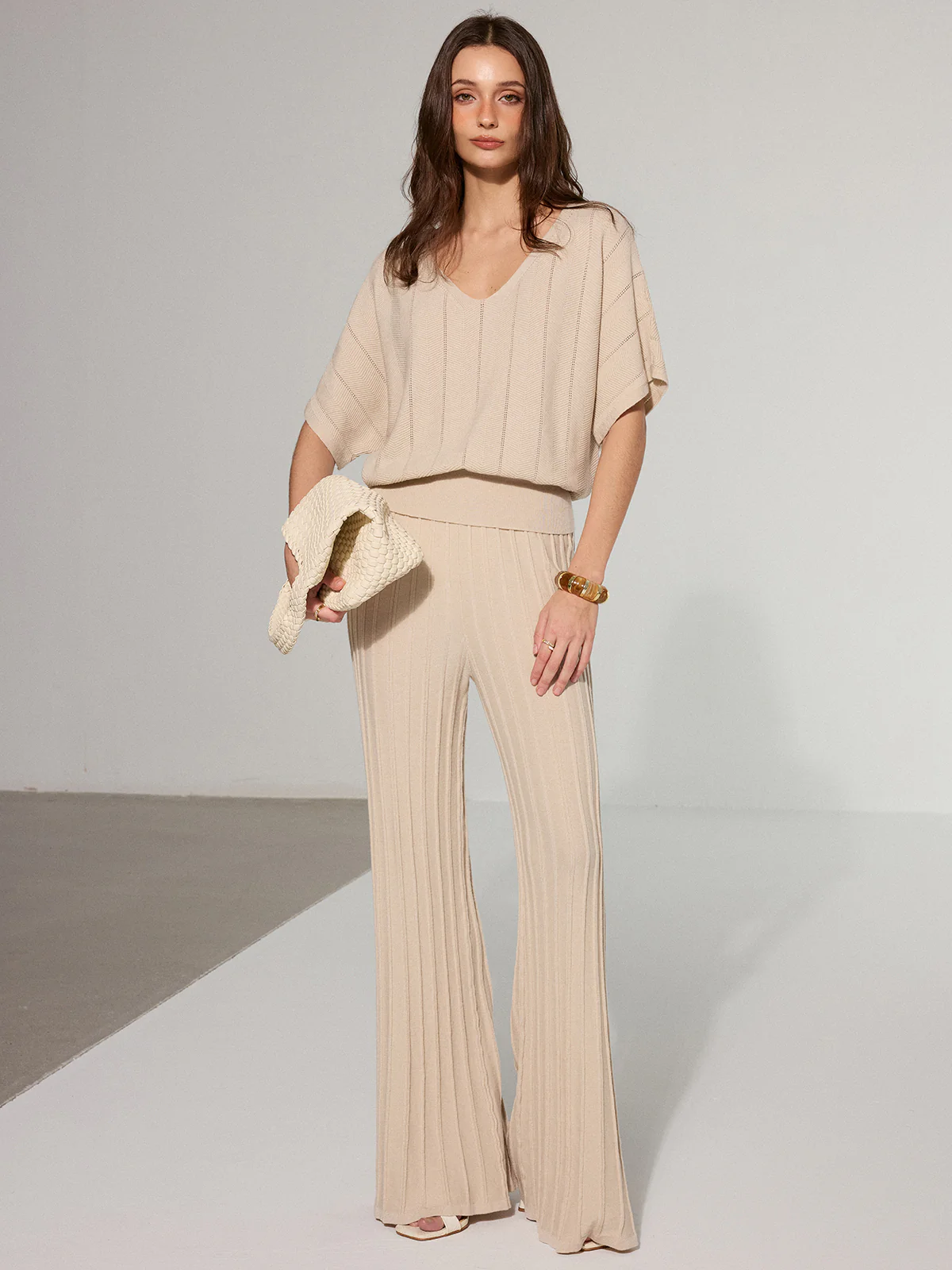 Textured Wool Blend V-Neck Sweater